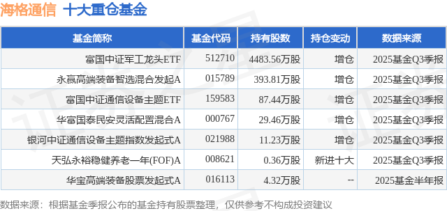 根据2025基金Q3季报公募基金重仓股数据,重仓该股的公募基金共6家,其中持有数量最多的公募基金为富国基金的富国中证军工龙头ETF。富国中证军工龙头ETF目前规模为146.9亿元,最新净值0.7497(12月26日),较上一交易日上涨0.71%,近一年上涨20.98%。该公募基金现任基金经理为王乐乐 牛志冬。王乐乐在任的基金产品包括:富国中证消费50ETF,管理时间为2019年10月14日至今,期间收益率为19.38%;富国中证科技50策略ETF,管理时间为2019年11月15日至今,期间收益率为81.28%;富国中证科技50策略ETF联接A,管理时间为2020年2月20日至今,期间收益率为37.21%。牛志冬在任的基金产品包括:富国中证移动互联网指数(LOF)A,管理时间为2015年5月13日至今,期间收益率为-5.07%;富国中证医药主题指数增强A,管理时间为2016年11月11日至今,期间收益率为43.33%;富国中证娱乐主题指数增强(LOF)A,管理时间为2017年3月13日至今,期间收益率为-21.92%;