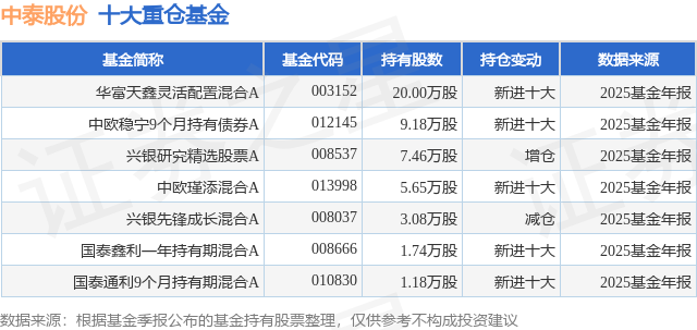 球速体育- 球速体育官方网站- APP下载3月4日中泰股份跌1042%华富天鑫灵活配置混合A基金重仓该股